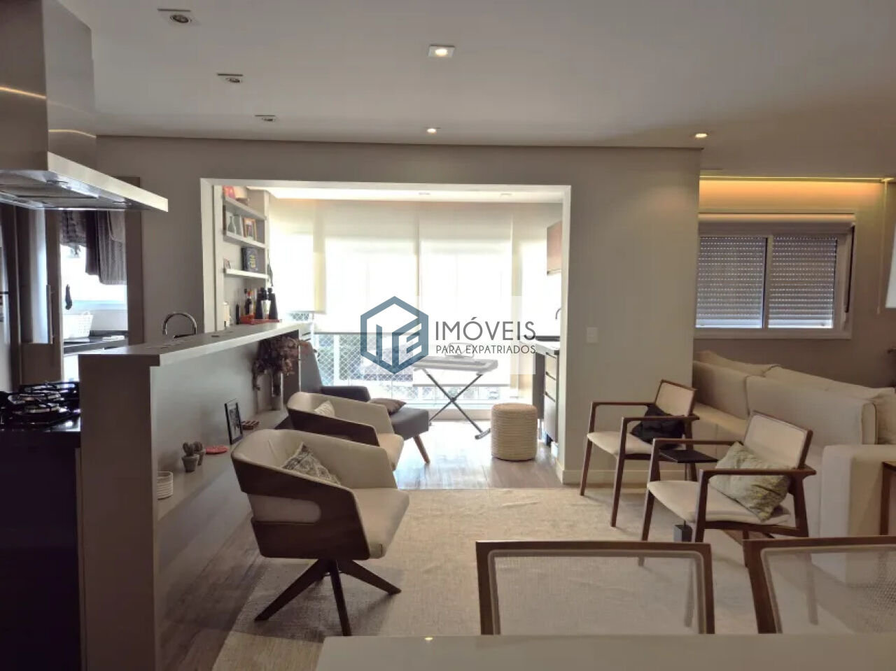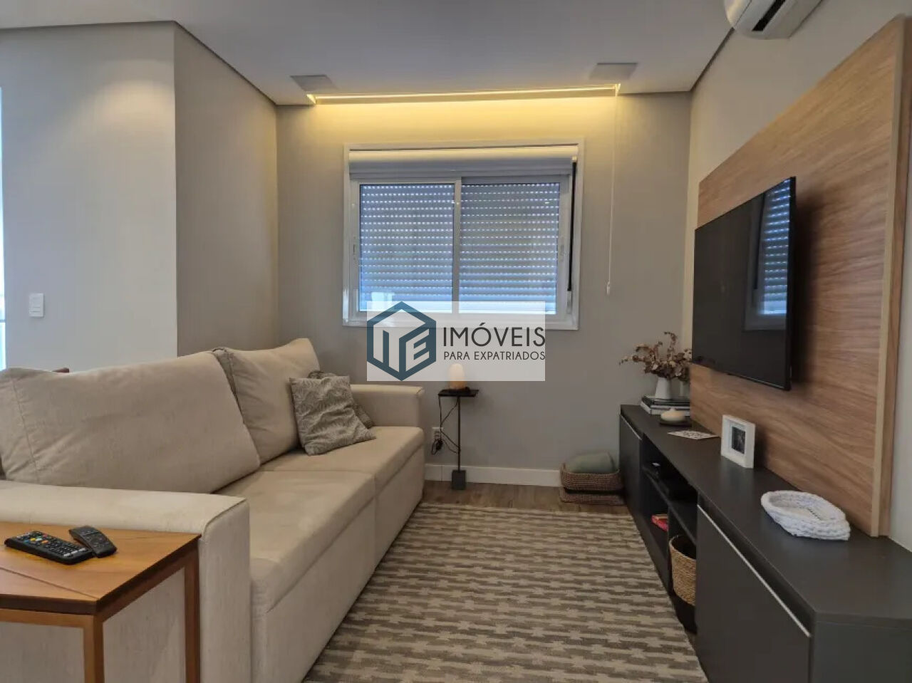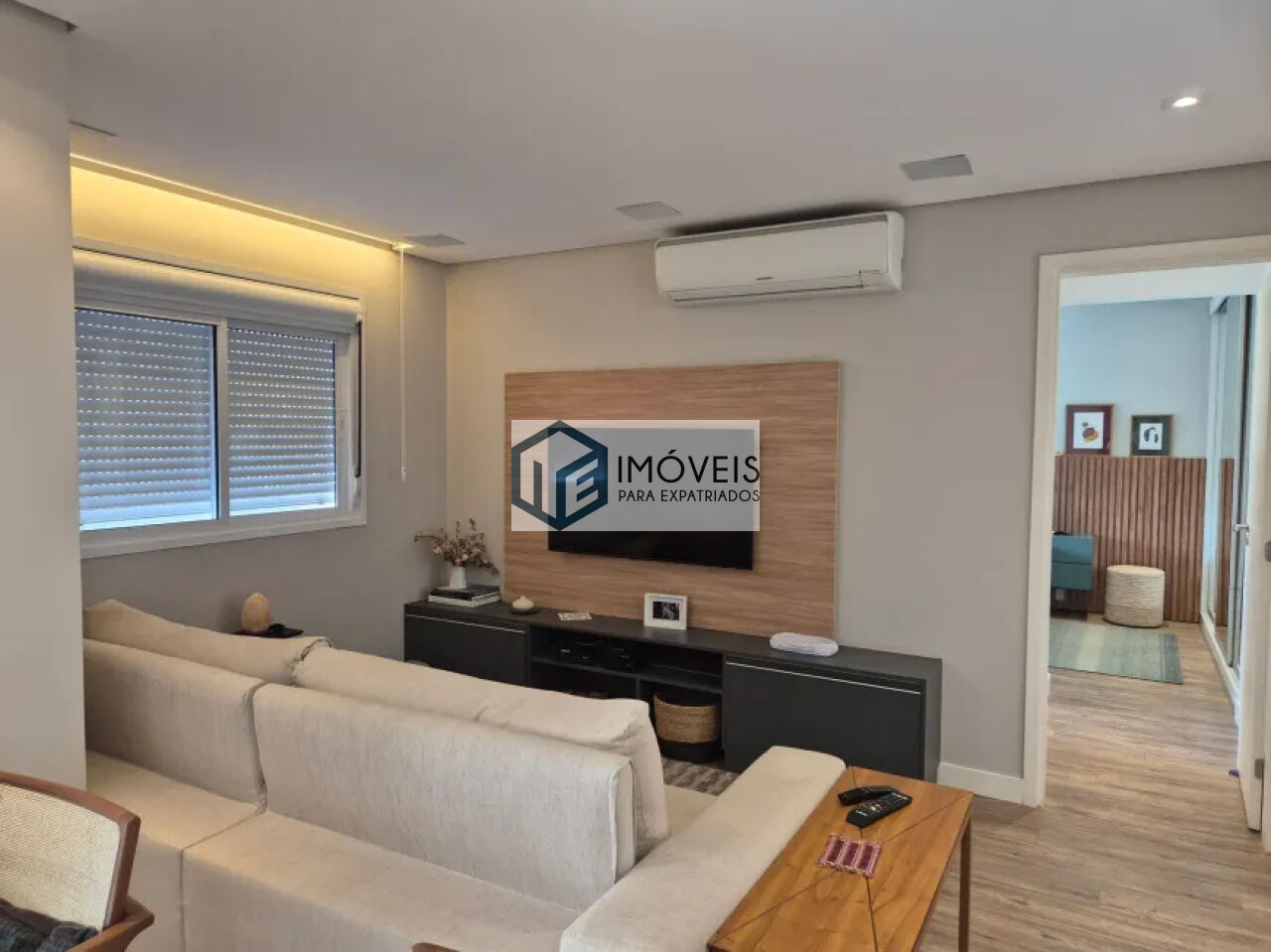 Originalmente com três dormitórios e atualmente configurado com duas suítes e sala de TV, oferecendo planta funcional e ambientes bem distribuídos. O imóvel conta com varanda, lavabo, cozinha integrada, acabamento de alto padrão e ar-condicionado em todos os ambientes, além de depósito privativo e duas vagas de garagem.