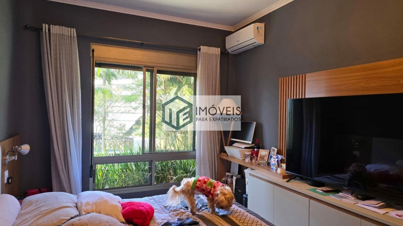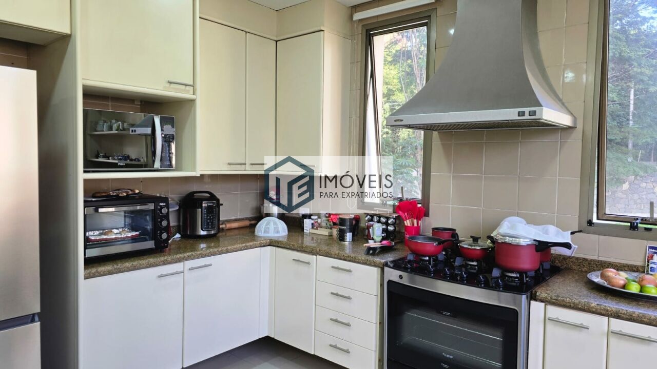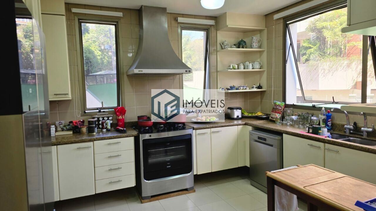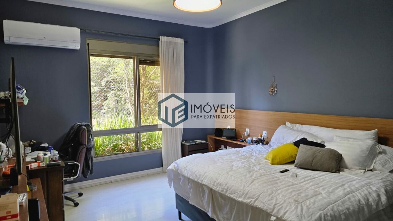 O imóvel dispõe de 4 suítes amplas, incluindo suíte master com dois banheiros independentes, além de 2 dependências para funcionários, totalizando 6 dormitórios. São 6 banheiros no total e 1 lavabo.