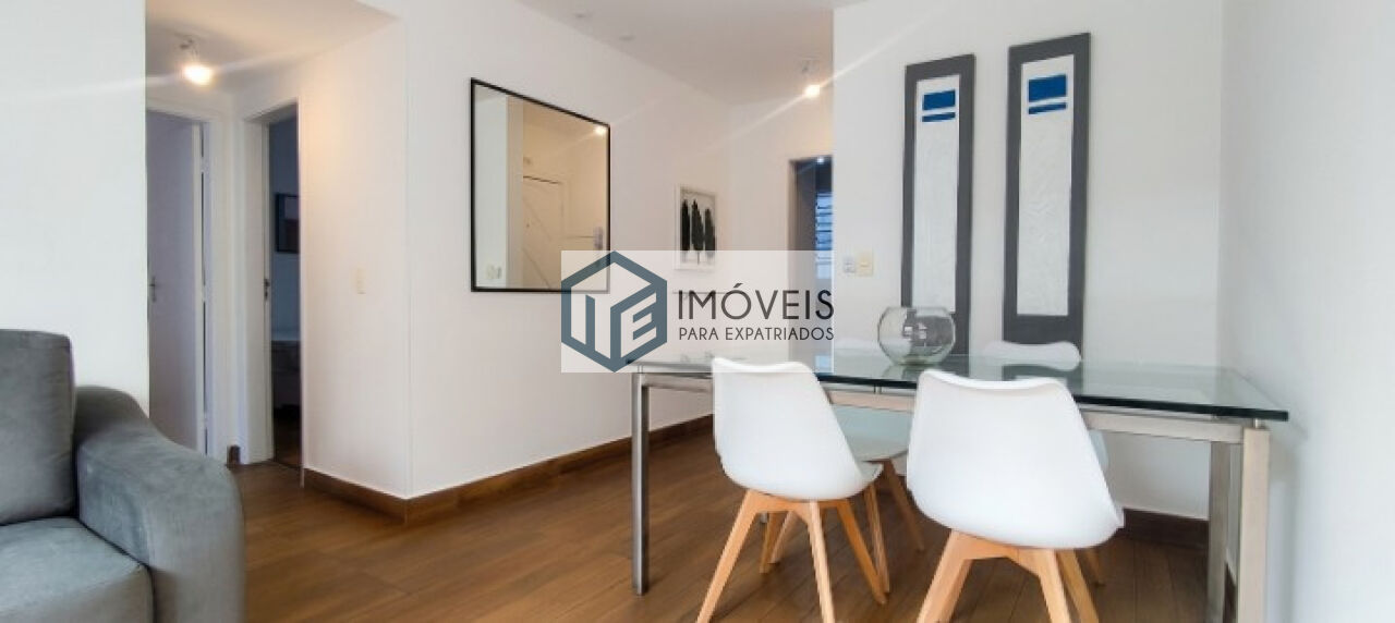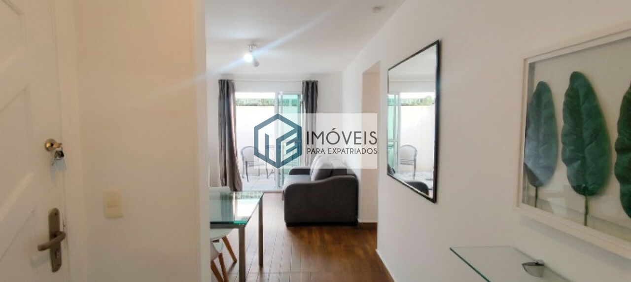 Apartamento Garden mobiliado, com 71 m² de área interna e amplo quintal privativo coberto, em Moema. Conta com hall de entrada único e privativo, sala de jantar espaçosa com varanda, 2 quartos amplos equipados com camas, armários e criados-mudos, além de banheiro completo. Cozinha equipada com armários, geladeira, fogão, micro-ondas e forno elétrico. Lavanderia com máquina de lavar e armários. O imóvel dispõe ainda de 1 vaga de garagem e excelente área externa privativa, ideal para quem busca conforto, praticidade e exclusividade em uma das regiões mais valorizadas de São Paulo.