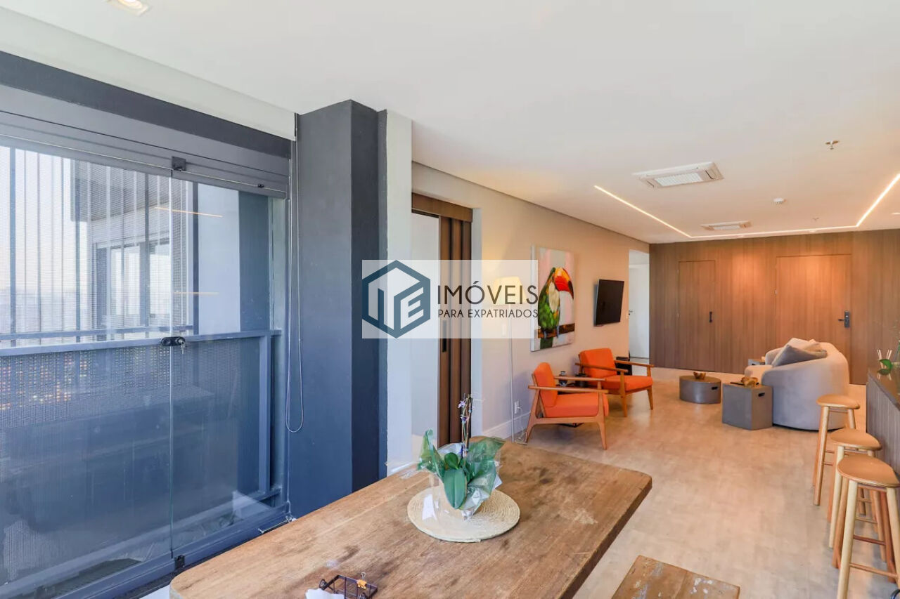 Apartamento amplo e elegante disponível para locação no Jardim das Acácias, São Paulo. O imóvel possui 105 m² de área privativa, com um dormitório em formato de suíte, proporcionando conforto e privacidade. A distribuição do espaço inclui dois banheiros, sendo ideal para receber visitas ou acomodar espaços de trabalho em casa. O apartamento conta com duas vagas de garagem, atendendo à necessidade de moradores com mais de um veículo ou que valorizem praticidade no dia a dia. O imóvel está localizado em um andar alto, com boa iluminação natural e ventilação, trazendo sensação de amplitude aos ambientes. A unidade é mobiliada, oferecendo ambiente pronto para morar, com integração entre salas e espaços integrados para diferentes usos.