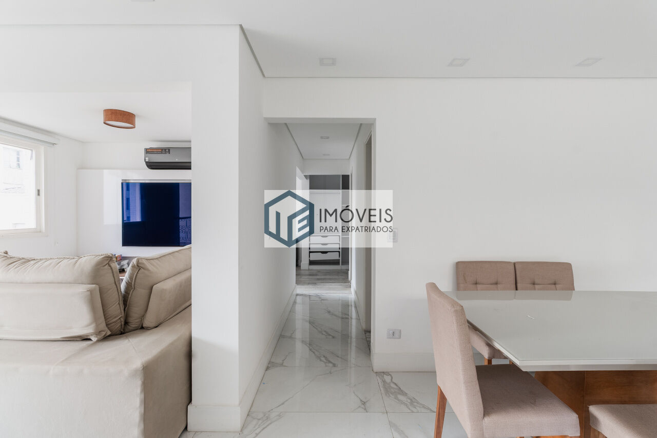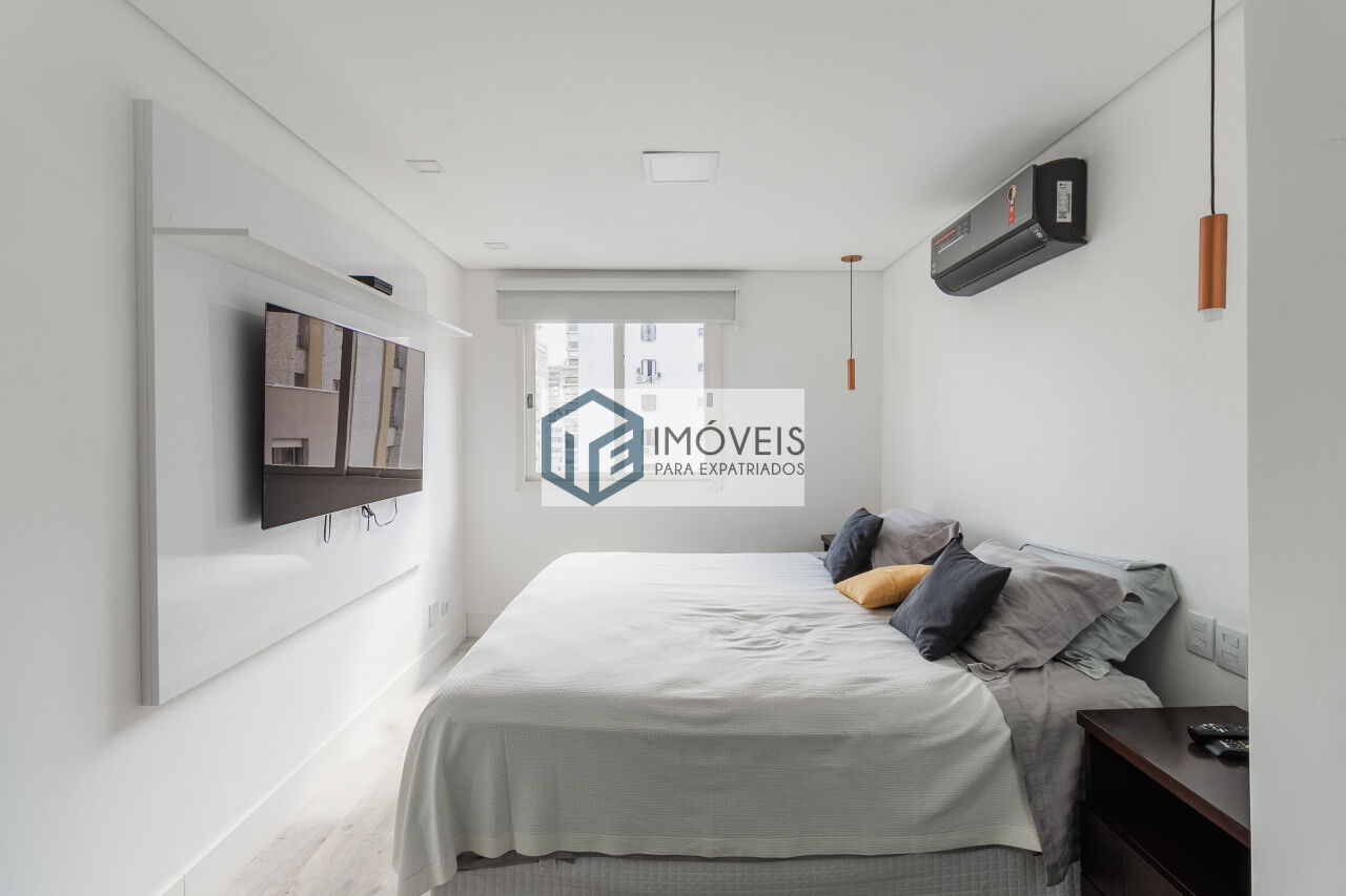Apartamento no bairro Jardins de 1 dormitório e 1 vaga. O bairro Jardins, na zona oeste de São Paulo, é uma das regiões mais nobres, seguras e arborizadas da cidade, composta por quatro bairros principais: Jardim Paulista, Jardim Europa, Jardim América e Jardim Paulistano. Com alto padrão de vida, a área é conhecida pela gastronomia de luxo, lojas sofisticadas na Oscar Freire e intensa vida cultural, oferecendo uma combinação de tranquilidade e fácil acesso à Avenida Paulista.