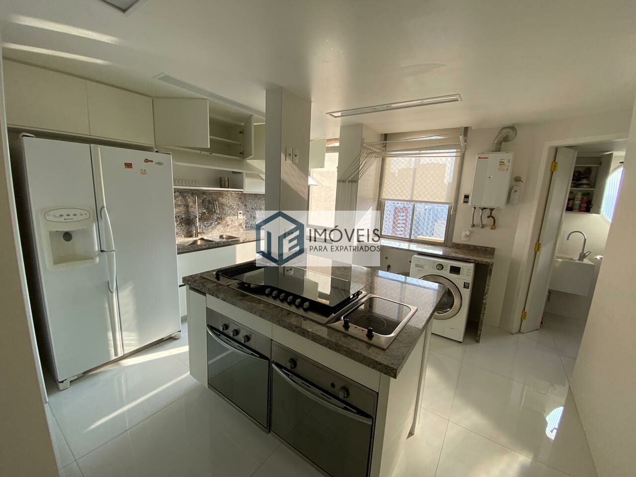 A área social é composta por sala de estar e sala de jantar integradas, com excelente iluminação natural. A cozinha em ilha traz um toque contemporâneo ao imóvel, além de estar equipada com eletrodomésticos e armários novos. O apartamento é semi mobiliado, conforme fotos, e possui ar-condicionado.