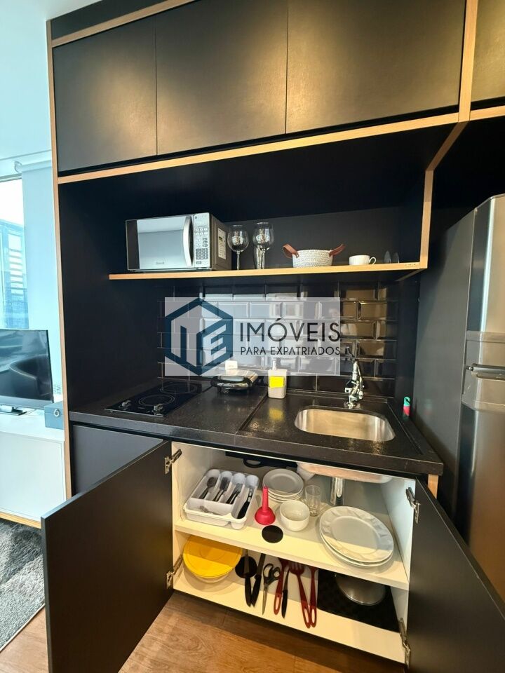 Studio de 30m² disponível para locação no Condomínio VN Ferreira Lobo, localizado na Rua Coronel Joaquim Ferreira Lobo, em Vila Olímpia. O imóvel é mobiliado e possui acabamento de alto padrão. A planta oferece integração entre a cozinha e a sala, otimizando o espaço e proporcionando praticidade no dia a dia. O apartamento conta ainda com ar-condicionado instalado e um banheiro funcional.