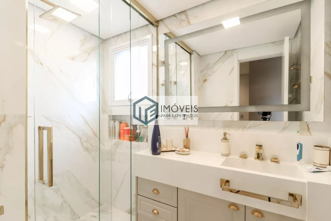 O imóvel conta com dois dormitórios, ambos suítes, proporcionando mais comodidade aos moradores, além de cinco banheiros no total e duas vagas de garagem. Situado em andar alto, o apartamento oferece boa iluminação natural e vista privilegiada.
