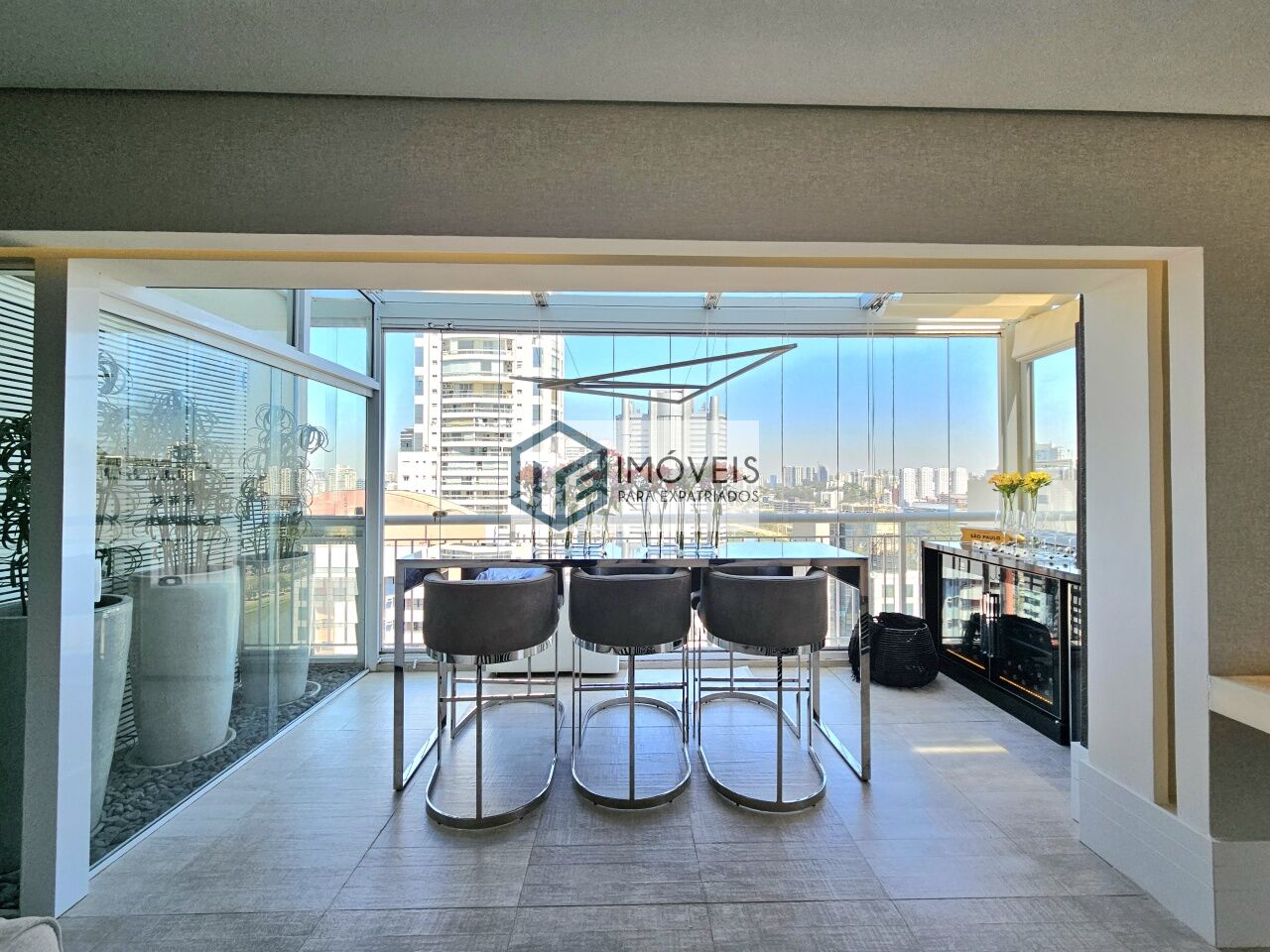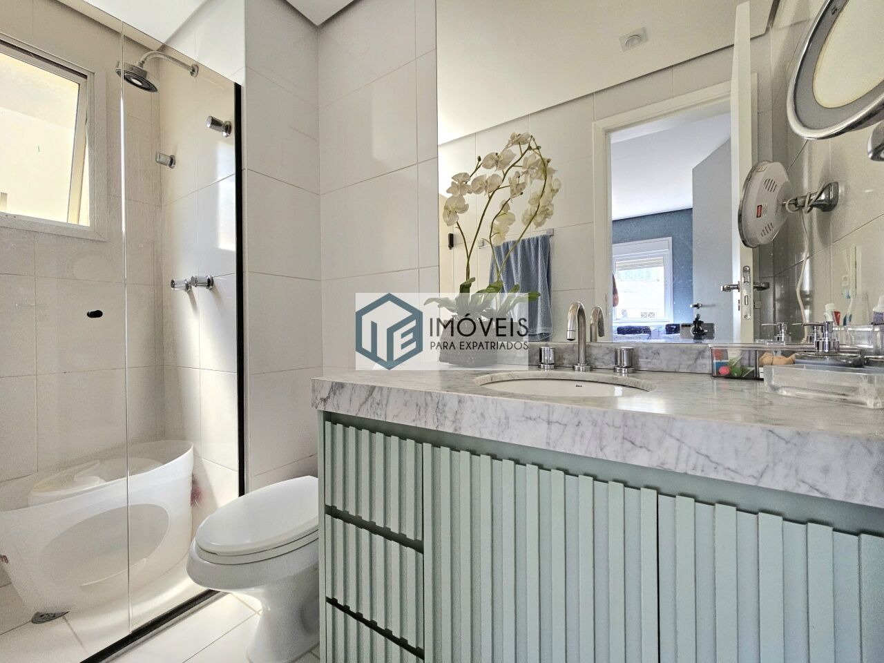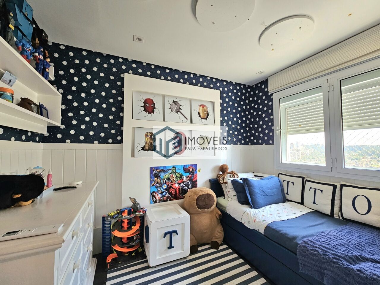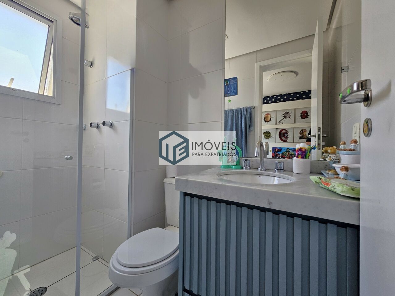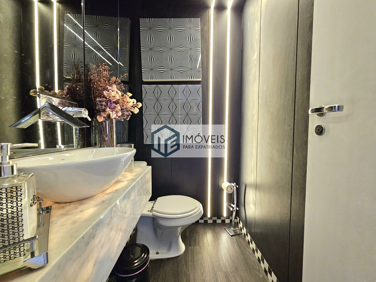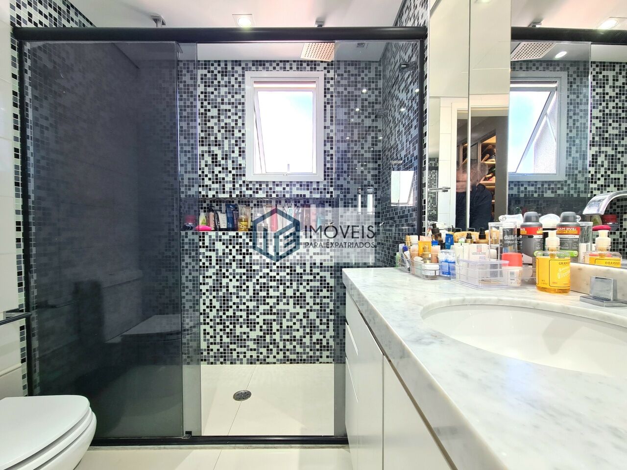Cobertura exclusiva à venda no Brooklin com 305?m², 4 dormitórios (sendo 3 suítes),3 vagas de garagem e uma vista espetacular da cidade. Projetada pela arquiteta Natalia Scheidt, a unidade é distribuída em dois pavimentos e oferece piscina privativa aquecida até 38?°C, revestida em pedra Hijau, com prainha, deck e lounge com lareira, além de varanda gourmet com churrasqueira a carvão e cozinha de apoio. No piso superior, estão as salas para três ambientes, lavabo, escritório, brinquedoteca (quarto reversível) e amplo depósito. No piso inferior, salas de estar e jantar com varanda integrada, lavabo, 3 suítes (a máster com closet ampliado e cabeceira personalizada),cozinha, lavanderia e dependência de serviço. Destaques das últimas reformas incluem ar-condicionado novo em todas as suítes e janelas antirruído em duas delas, garantindo máximo conforto acústico. Um imóvel sofisticado e completo, ideal para quem busca qualidade de vida e exclusividade em uma das regiões mais valorizadas de São Paulo.
