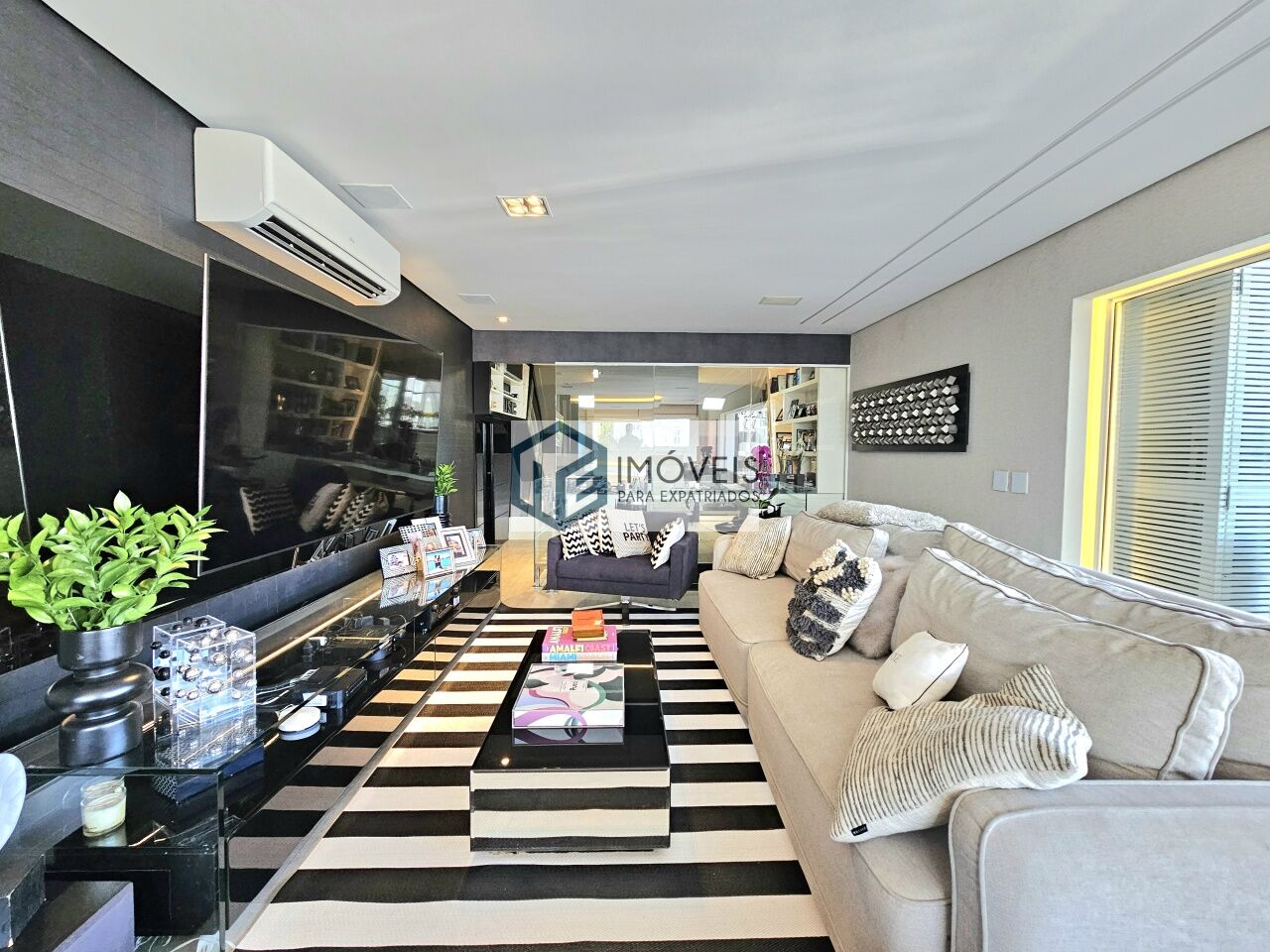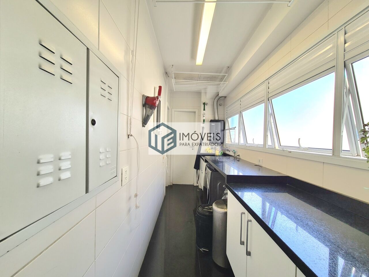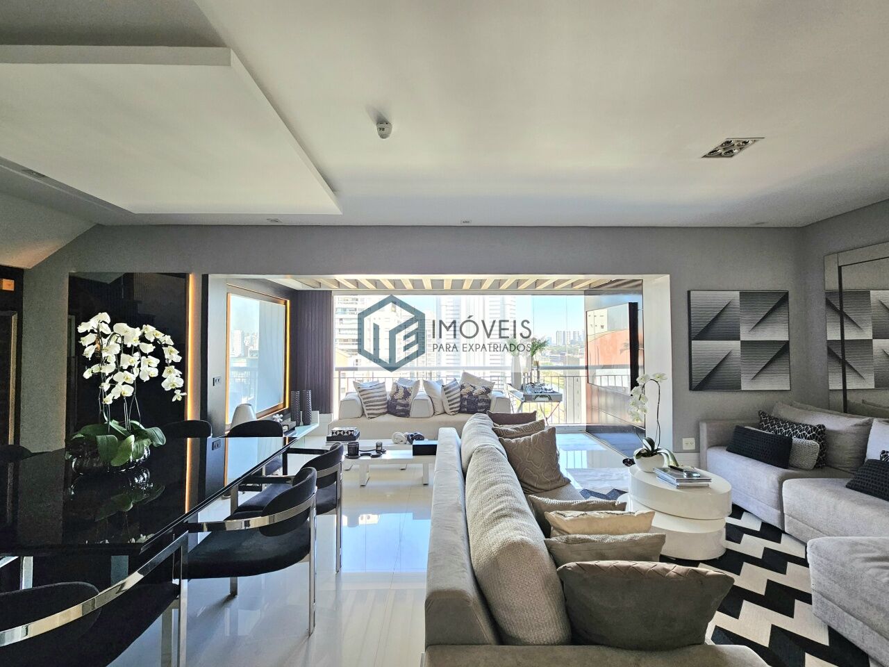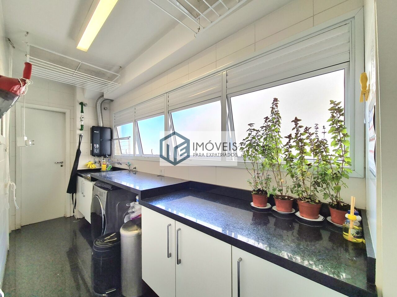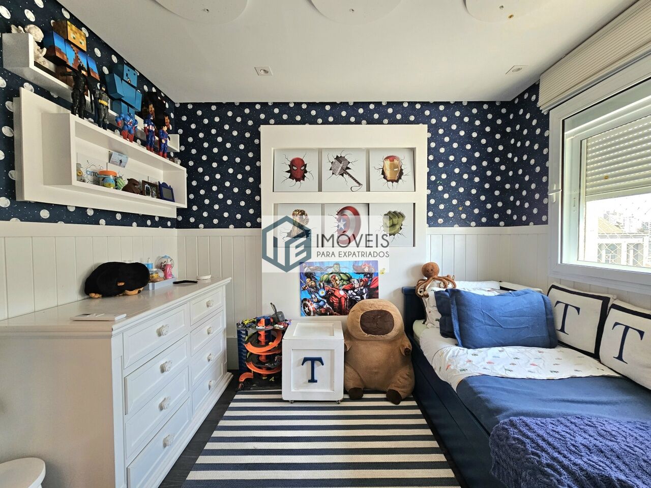 Cobertura exclusiva à venda no Brooklin com 305?m², 4 dormitórios (sendo 3 suítes),3 vagas de garagem e uma vista espetacular da cidade. Projetada pela arquiteta Natalia Scheidt, a unidade é distribuída em dois pavimentos e oferece piscina privativa aquecida até 38?°C, revestida em pedra Hijau, com prainha, deck e lounge com lareira, além de varanda gourmet com churrasqueira a carvão e cozinha de apoio. No piso superior, estão as salas para três ambientes, lavabo, escritório, brinquedoteca (quarto reversível) e amplo depósito. No piso inferior, salas de estar e jantar com varanda integrada, lavabo, 3 suítes (a máster com closet ampliado e cabeceira personalizada),cozinha, lavanderia e dependência de serviço. Destaques das últimas reformas incluem ar-condicionado novo em todas as suítes e janelas antirruído em duas delas, garantindo máximo conforto acústico. Um imóvel sofisticado e completo, ideal para quem busca qualidade de vida e exclusividade em uma das regiões mais valorizadas de São Paulo.