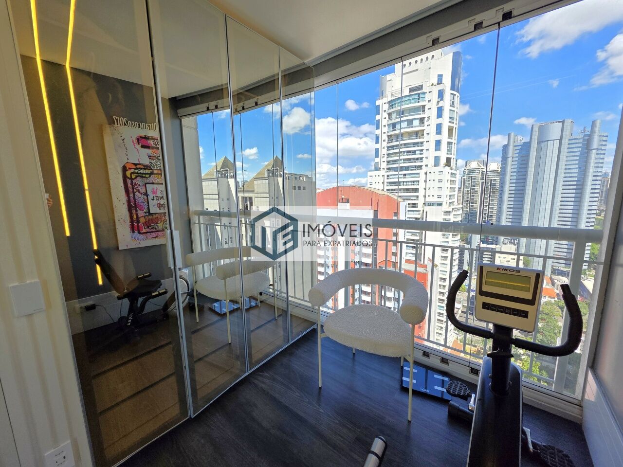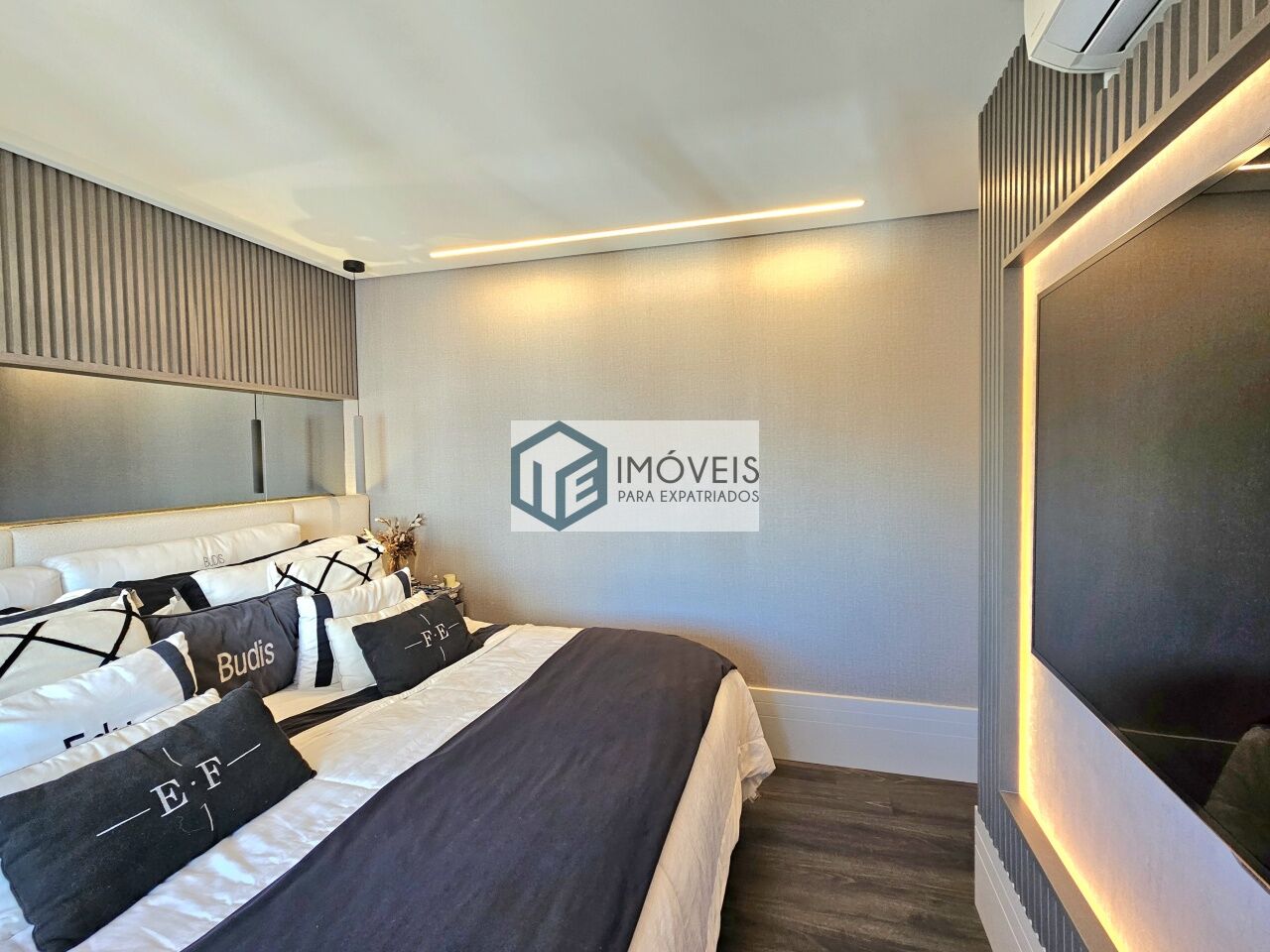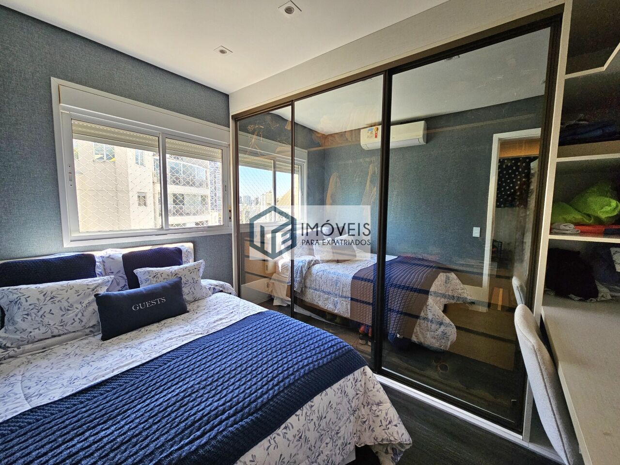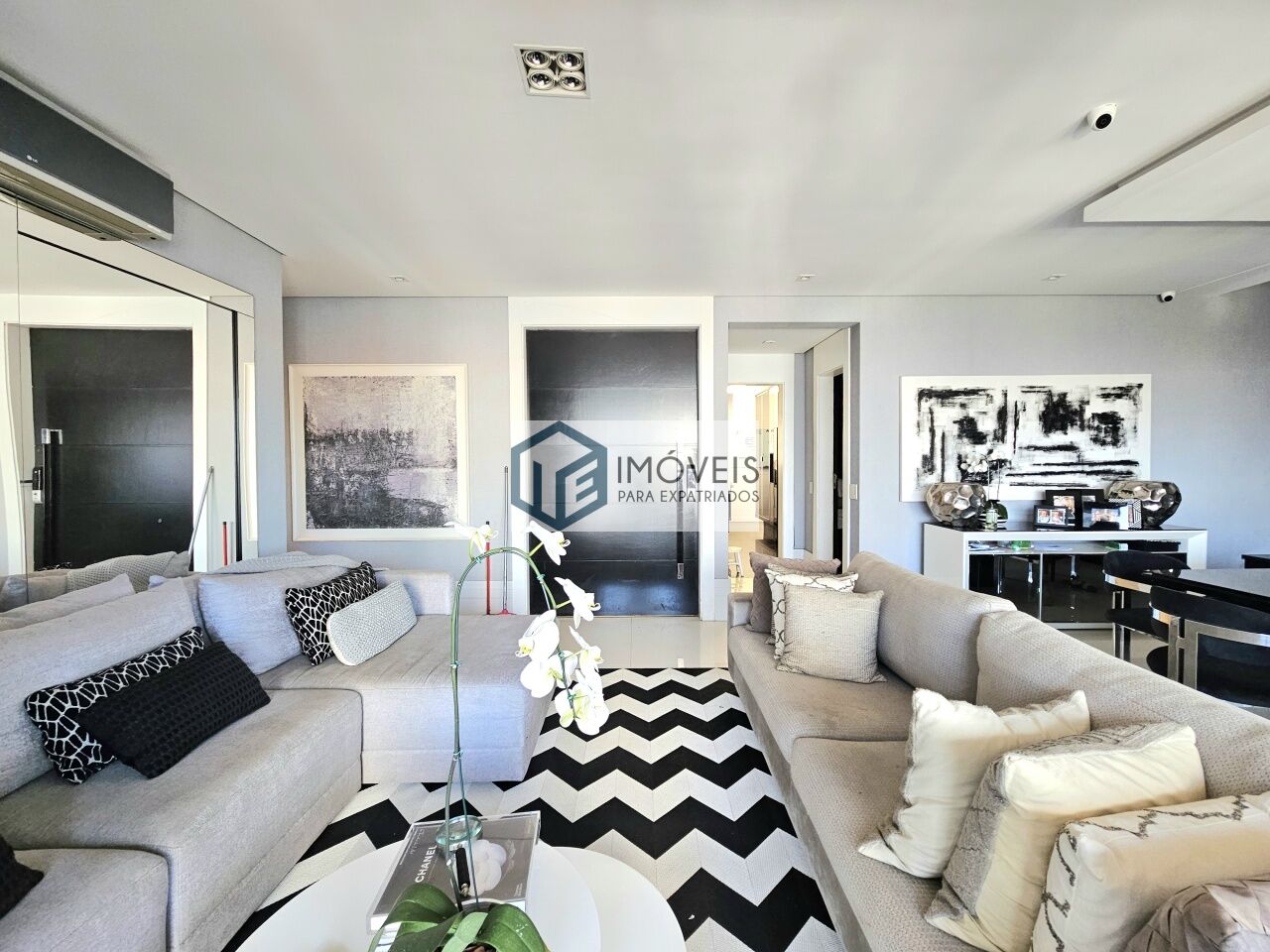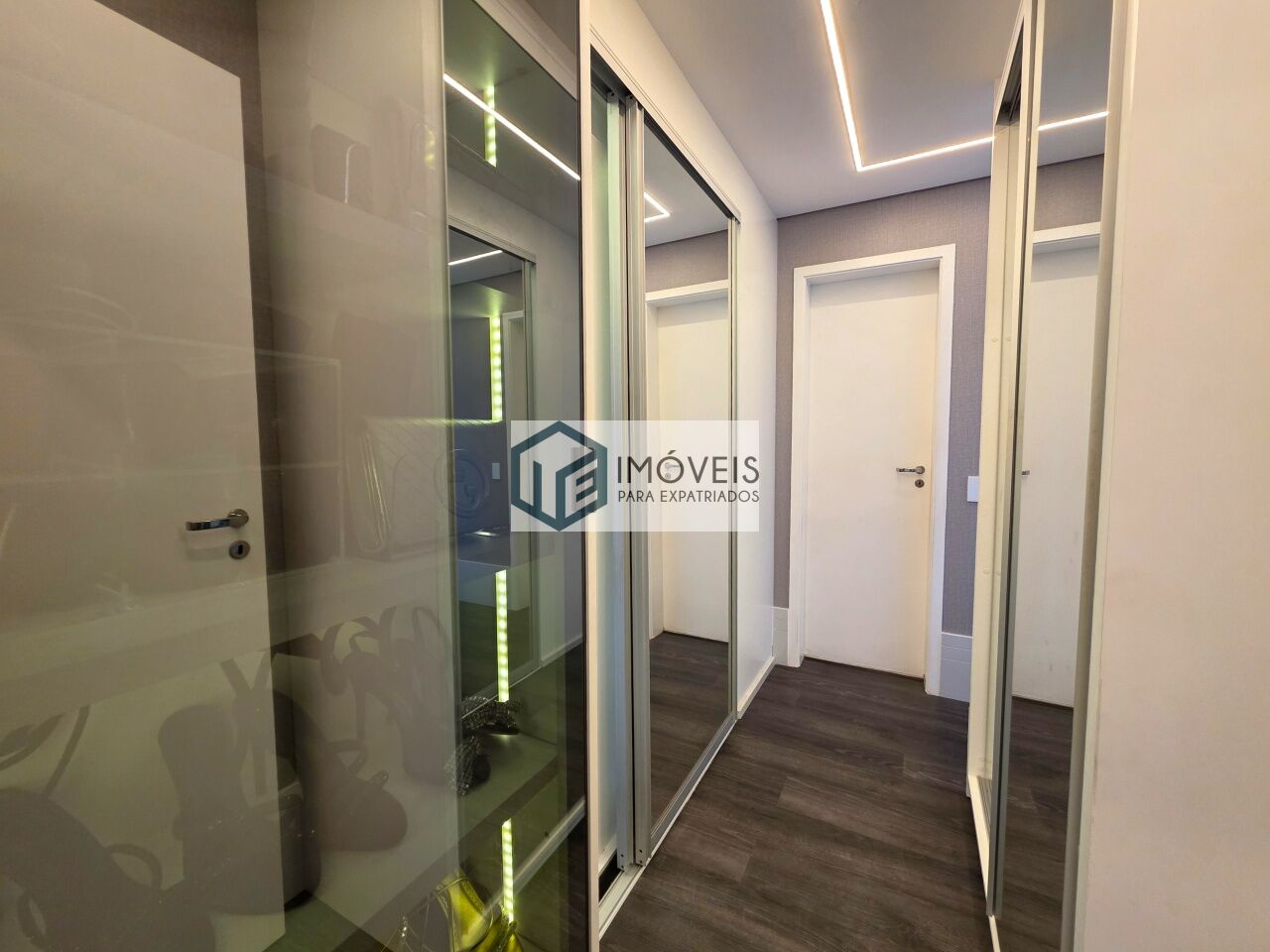 Cobertura exclusiva à venda no Brooklin com 305?m², 4 dormitórios (sendo 3 suítes),3 vagas de garagem e uma vista espetacular da cidade. Projetada pela arquiteta Natalia Scheidt, a unidade é distribuída em dois pavimentos e oferece piscina privativa aquecida até 38?°C, revestida em pedra Hijau, com prainha, deck e lounge com lareira, além de varanda gourmet com churrasqueira a carvão e cozinha de apoio. No piso superior, estão as salas para três ambientes, lavabo, escritório, brinquedoteca (quarto reversível) e amplo depósito. No piso inferior, salas de estar e jantar com varanda integrada, lavabo, 3 suítes (a máster com closet ampliado e cabeceira personalizada),cozinha, lavanderia e dependência de serviço. Destaques das últimas reformas incluem ar-condicionado novo em todas as suítes e janelas antirruído em duas delas, garantindo máximo conforto acústico. Um imóvel sofisticado e completo, ideal para quem busca qualidade de vida e exclusividade em uma das regiões mais valorizadas de São Paulo.