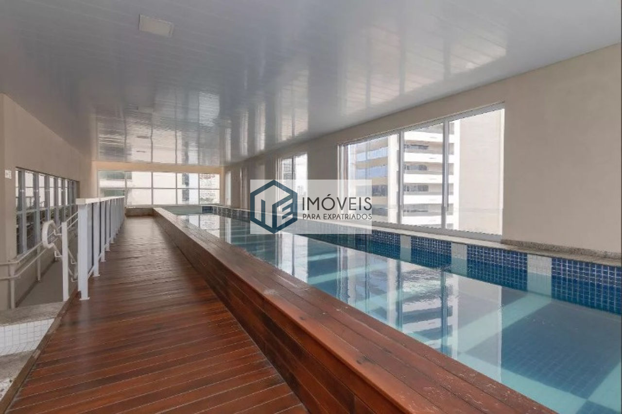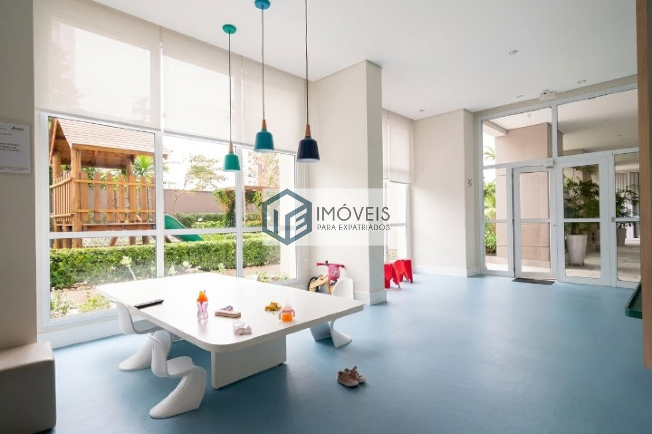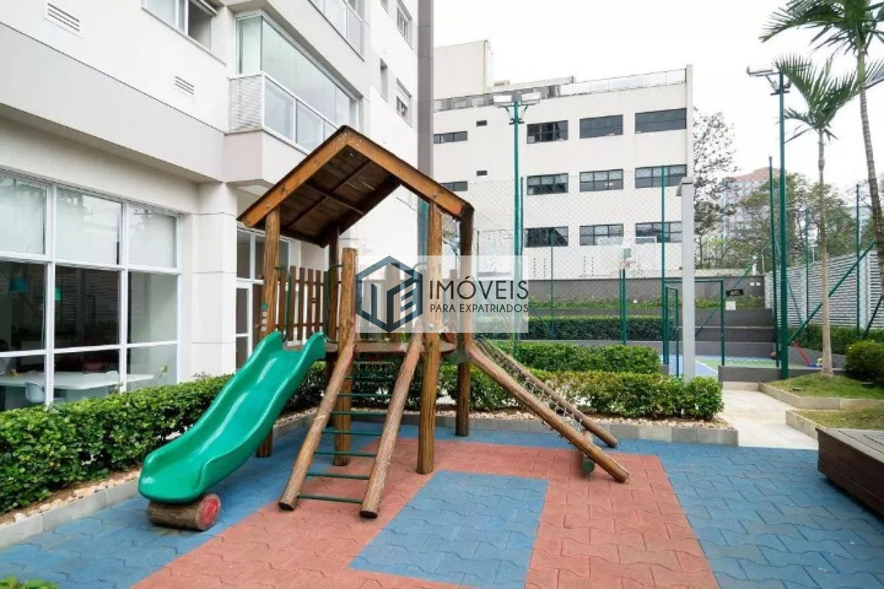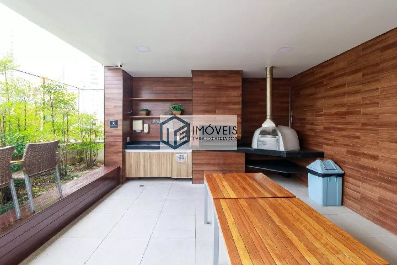 Apartamento semimobiliado, com 51 m² de área útil, no Brooklin, com planta funcional e muito bem aproveitada. Conta com 1 dormitório, 1 vaga de garagem e living integrado à varanda gourmet, com janelas amplas, bela vista da cidade e persianas instaladas, proporcionando mais conforto e luminosidade aos ambientes. Cozinha completa, equipada com armários e eletrodomésticos, além de armário embutido no dormitório, armários planejados na área de serviço e armários também na varanda. O imóvel possui ainda lustres instalados, ventilador de teto no dormitório e piso em porcelanato de alto padrão, reunindo praticidade, bom gosto e excelente acabamento em uma localização valorizada no Brooklin.