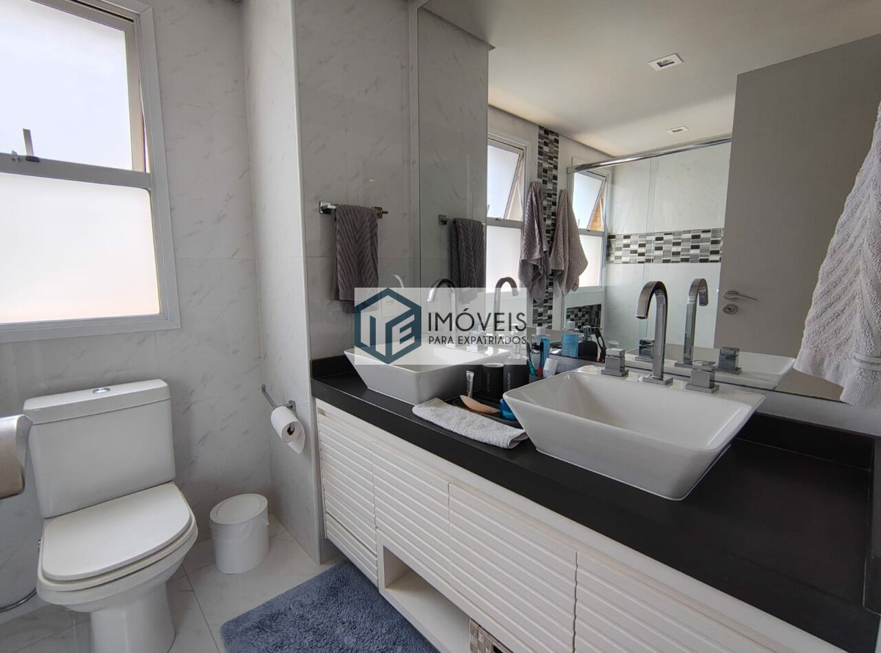 Possui 3 suítes amplas, todas muito bem decoradas, além de dependência completa de serviço. São 3 banheiros privativos, 1 lavabo e 1 banheiro de serviço, garantindo funcionalidade e comodidade no dia a dia.