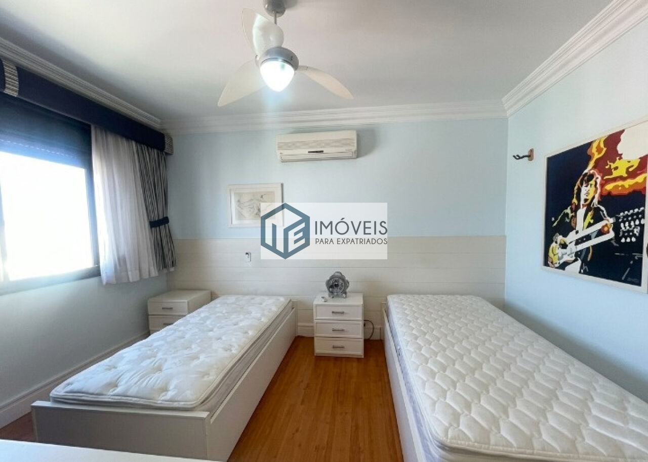 Unidade ampla, mobiliada, silenciosa e desocupada, com excelente distribuição dos ambientes e vista panorâmica. Conta com 4 vagas de garagem, sala ampliada, sala de almoço, lavabo, lavanderia e wc de empregados. Possui 4 suítes e ar condicionado em todas, além de dormitórios confortáveis e bem planejados.