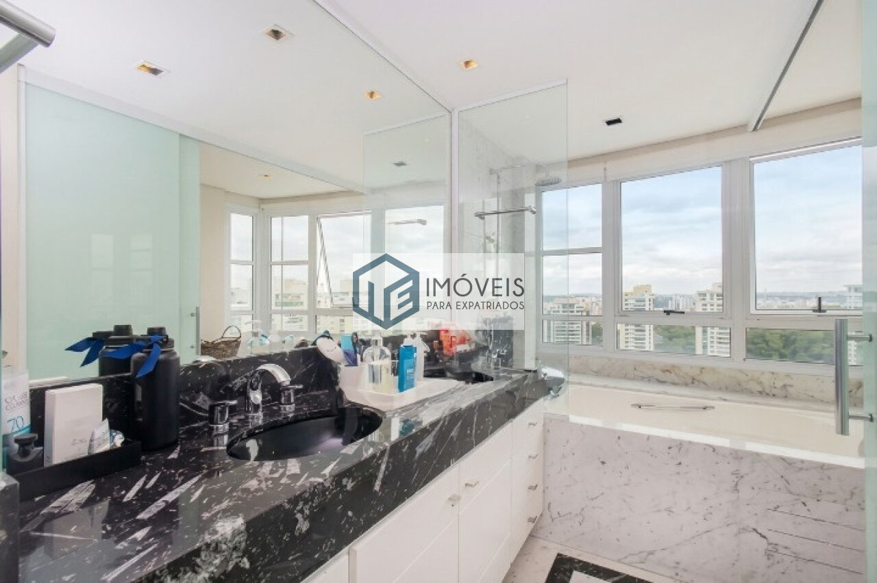 Espaçoso apartamento no Panamby, com ambientes amplos e excelente iluminação natural graças às janelas grandes. A unidade conta com três salas (estar, jantar e sala principal),quatro suítes com armários planejados, sendo a suíte master com banheira.
