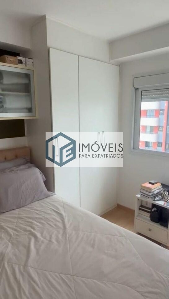 Totalmente mobiliado, conta com armários no quarto, banheiro e cozinha, além de ar-condicionado e box no banheiro. É ideal para solteiros ou casais que buscam praticidade em um espaço moderno e bem planejado. O apartamento também aceita pets. O condomínio oferece estrutura completa de lazer e segurança, com piscina, academia, churrasqueira, salão de festas, quadra esportiva, sauna, playground, portaria 24 horas e áreas comuns equipadas.